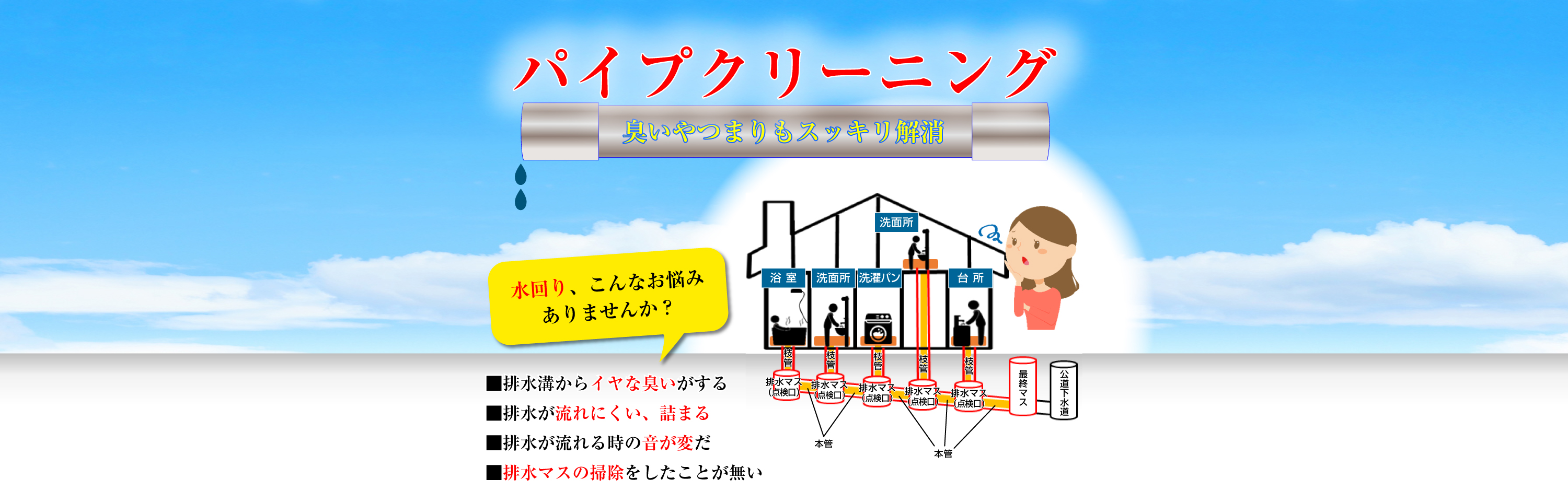 よくご相談を頂く内容として、排水が詰まって流れない、水が逆流してくる、排水が溢れる、水を流すとゴボゴボ音がする、排水口から悪臭がして困ってといったトラブルですが、突発的、緊急的なトラブルにもベテランスタッフがすぐにお伺いし、問題を解決いたします。ミヤタ総合設備は安心・安全の明朗会計です。排水管高圧洗浄の詳しい施工方法、施工料金など、ご不明な点はお気軽にご相談ください。